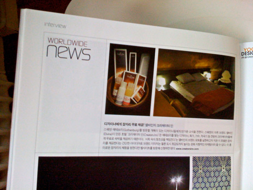 We wish we could start of the year with introducing a brand new Creators Inn by Elvine in Korea but for now we have to settle for a feature in the January issue of the lovely Korean magazine DESIGN. Check it out after the jump.